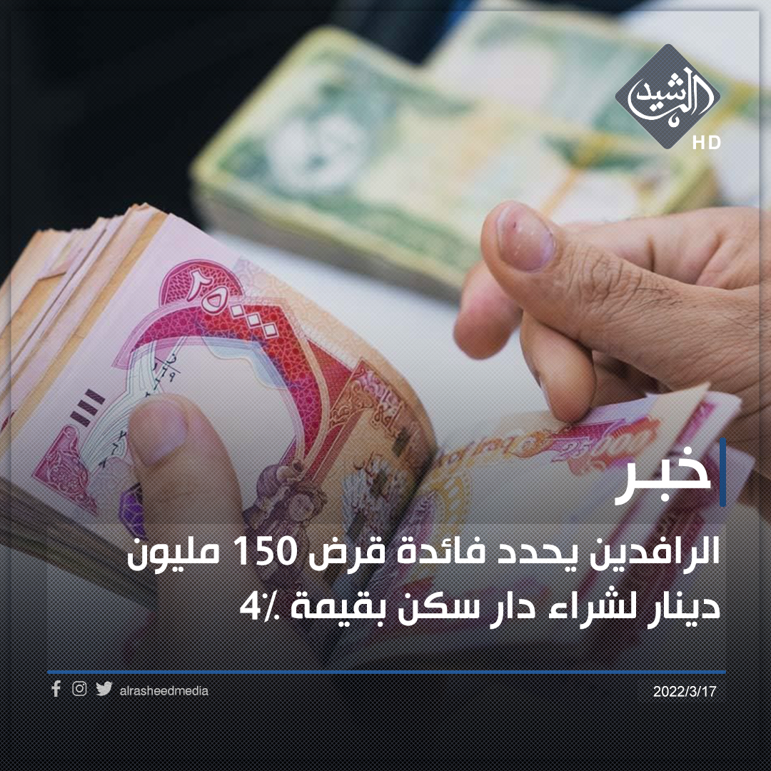 حدد مصرف الرافدين، الخميس، فائدة قرض 150 مليون دينار لشراء دار سكن.