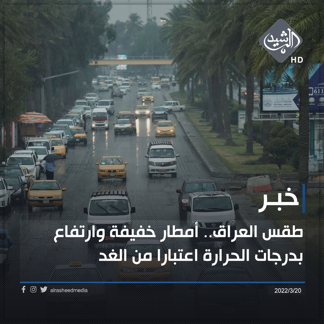 طقس العراق.. أمطار خفيفة وارتفاع بدرجات الحرارة اعتبارا من الغد