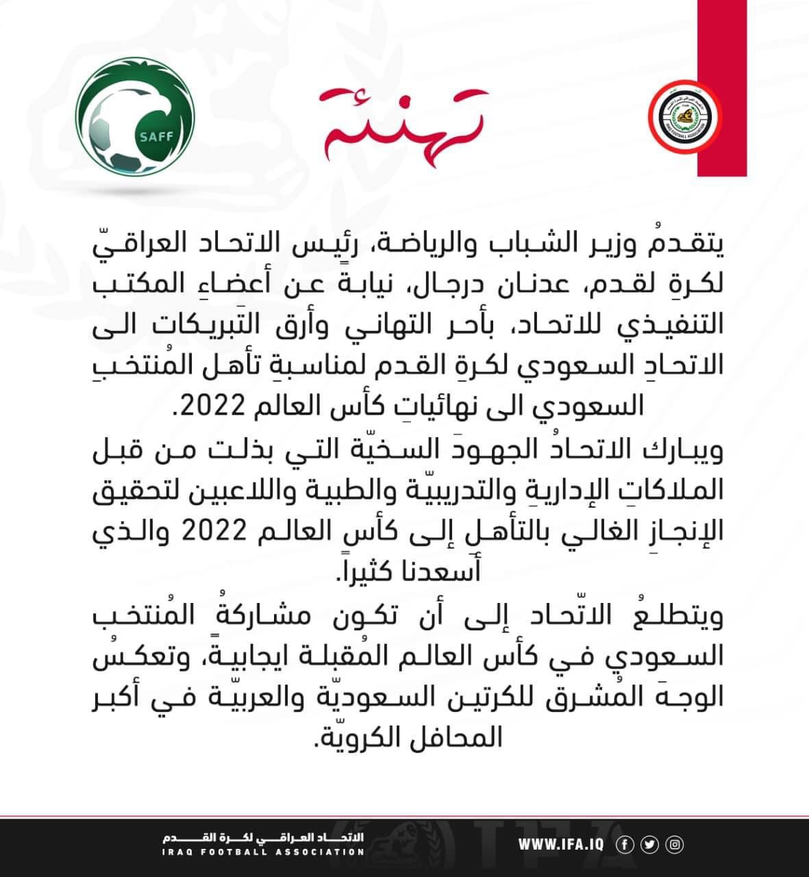 رياضةالعراق يهنئ السعودية بتأهل منتخبها الى نهائيات كأس العالم 2022 قبل 4 سنوات 6 مشاهدات شارك الوسومالسعوديةكأس العالم 2022قد يهمك أيضا سياسة المجلس السياسي الوطني يعلن الاتفاق على آليات تسهل حسم اختيار رئيس مجلس النواب قبل 3 ساعات 10 مشاهدات الحكم الرابع الـVAR يتلاعب بدورينا .. تفاصيل صادمة في الحكم الرابع قبل 4 ساعات 10 مشاهدات عربي ودولي الحكومة الليبية تعلن مقتل رئيس الأركان محمد الحداد ومرافقيه اثر تحطم طائرتهم في أنقرة قبل 4 ساعات 19 مشاهدات عربي ودولي مقتل رئيس الأركان الليبي "محمد الحداد" ومرافقيه بتحطم طائرتهم أثناء عودتهم من أنقرة قبل 4 ساعات 16 مشاهدات عربي ودولي وسائل إعلام تركية: العثور على حطام طائرة رئيس الاركان الليبي التي سقطت بعد إقلاعها من أنقرة قبل 4 ساعات 9 مشاهدات