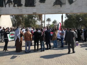 تظاهر منتسبو وضباط الجيش العراقي السابق، الاحد، في ساحة التحرير وسط بغداد.