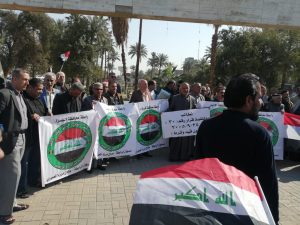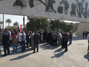 وقال مراسل الرشيد، ان”منتسبي وضباط الجيش السابق تظاهروا في ساحة التحرير يطالبون بتنفيذ الأمر الديواني ١٠٧”.