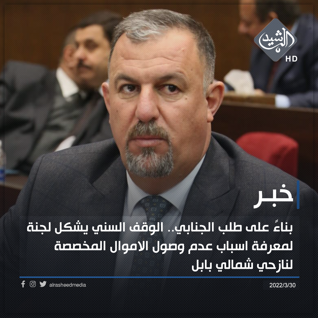 بناءً على طلب الجنابي.. الوقف السني يشكل لجنة لمعرفة اسباب عدم وصول الاموال المخصصة لنازحي شمالي بابل