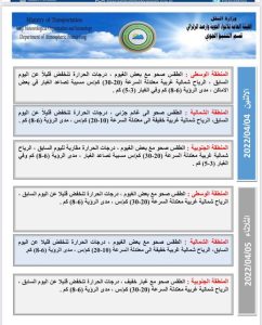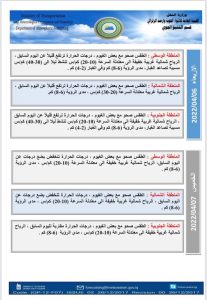 اعلنت هيئة الانواء الجوية، الاحد، حالة الطقس في العراق خلال الايام المقبلة، فيما اشارت الى انخفاض درجات الحرارة اعتبارا من الغد.