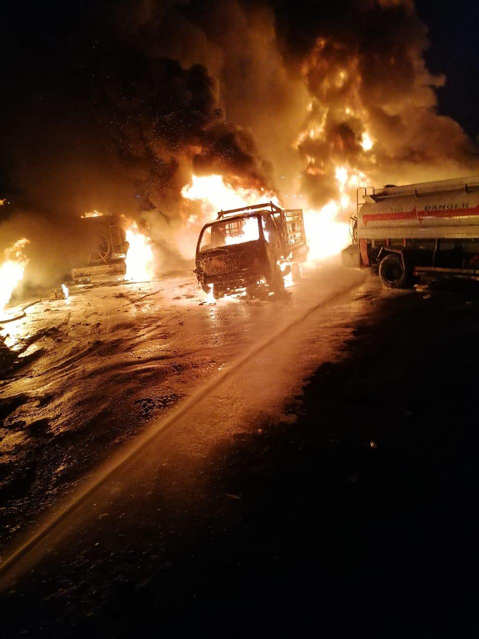 واضافت، ان”الفرق طوقت وعزلت النيران داخل التناكر المحترقة ومنعت توسع الحريق الى ما يجاورها من عجلات محملة بالوقود واستخدمت الفرق كميات كبيرة من مواد الاطفاء الخاصة باخماد المشتقات النفطية ( الفوم ) بهدف تعجيل السيطرة والاخماد التام ومنع تأثر المنطقة السكنية بالانبعاثات ونواتج الحريق الغازية وانهاء الحادث دون تسجيل اصابات بشرية مع تحجيم الاضرار المادية”.