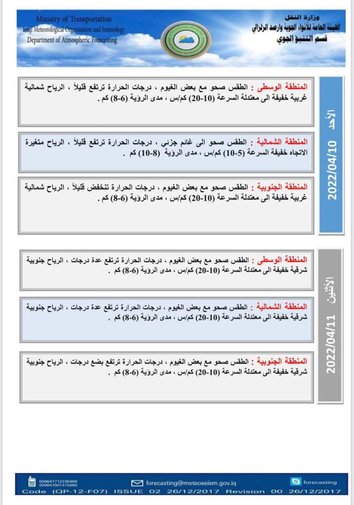 العراق يستعد لاستقبال حالة جوية غير مستقرة وأمطار غزيرة اعتباراً من مساء الغد