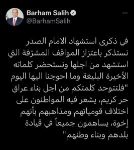 سياسةرئيس الجمهورية يدعو بذكرى استشهاد الامام الصدر الى توحيد الكلمة لبناء العراق قبل 4 سنوات 4 مشاهدات شارك الوسومرئيس الجمهوريةقد يهمك أيضا محليات المثنى تقرر تعطيل الدوام الرسمي الأربعاء بسبب سوء الأحوال الجوية قبل 8 ساعات 21 مشاهدات محليات النجف تقرر تعطيل الدوام الرسمي يوم غد الأربعاء بسبب سوء الأحوال الجوية قبل 9 ساعات 11 مشاهدات سياسة السيد الصدر يقرر تجميد سرايا السلام في البصرة والكوت لمدة ستة اشهر قبل 10 ساعات 14 مشاهدات رياضة الفرنسي عثمان ديمبلي يفوز بجائزة "ذا بيست" لأفضل لاعب في العالم قبل 11 ساعة 8 مشاهدات الثامنة الإجتماع الخامس للإطار .. حلقة مفرغة أيضاً قبل 12 ساعة 10 مشاهدات