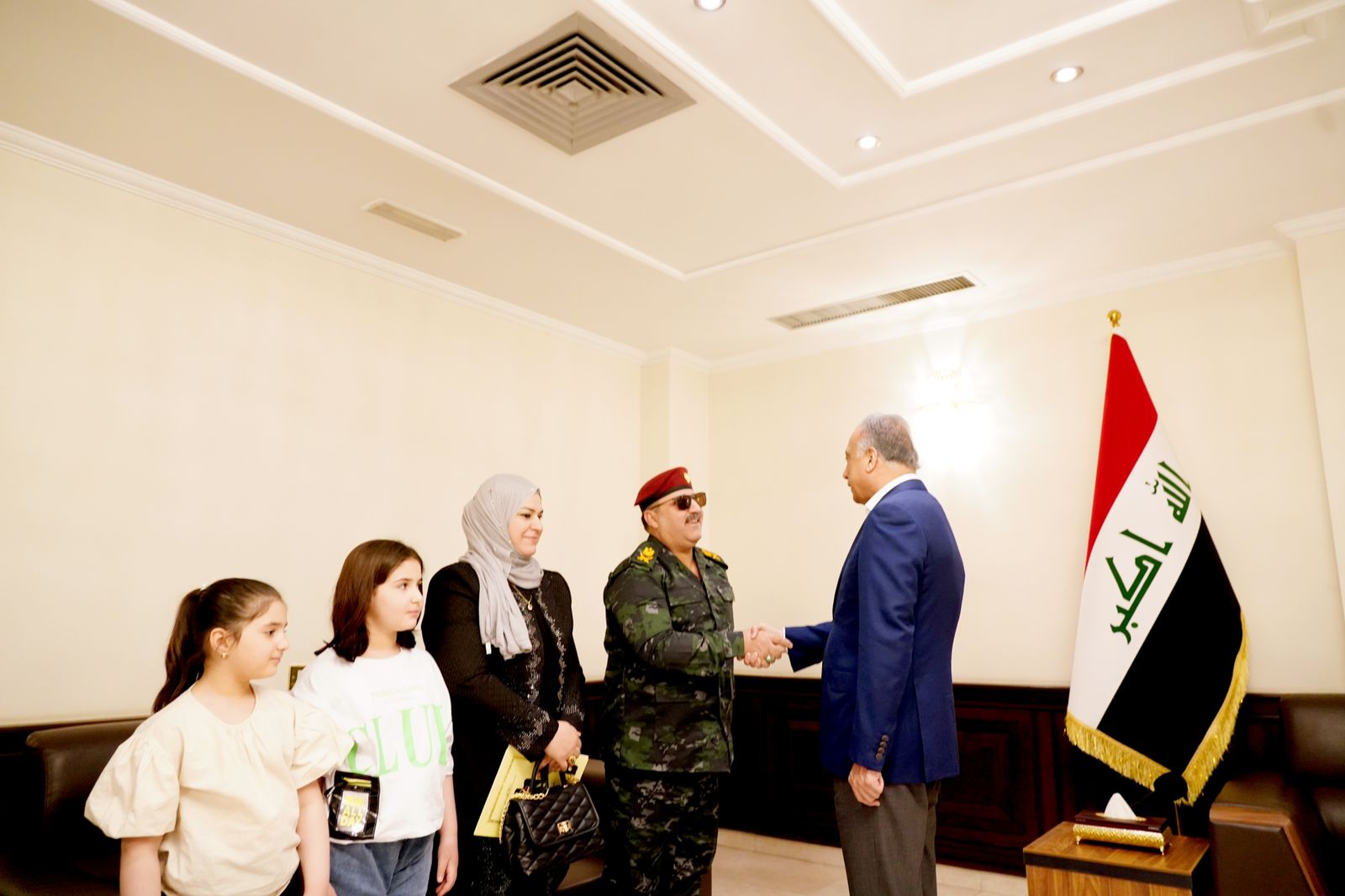 استقبل رئيس مجلس الوزراء القائد العام للقوات المسلحة مصطفى الكاظمي، بعد ظهر اليوم الإثنين، مدير استخبارات ديالى السابق اللواء الجريح قاسم علي حميد العنبكي الذي تعرض لإصابة بالغة خلال الأعوام الماضية، أثناء تصديه لعملية إرهابية جبانة.