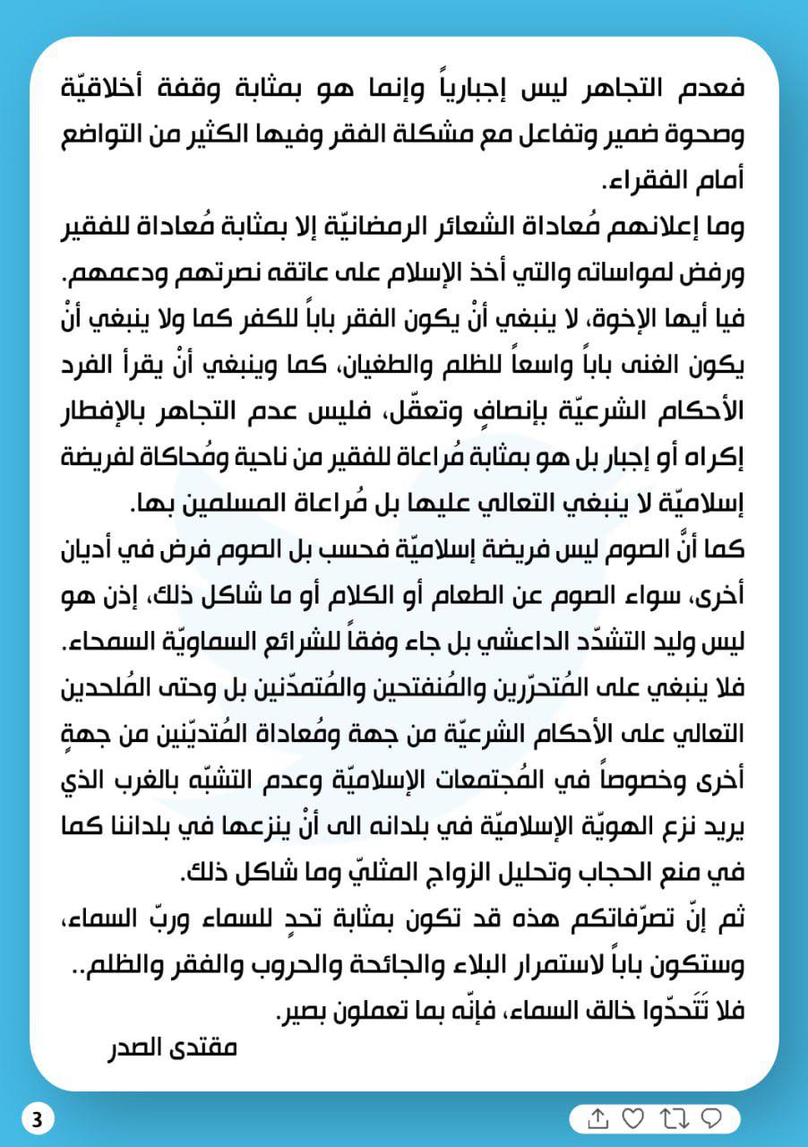 محلياتالسيد الصدر يتحدث عن الازمة الطبقية في المجتمع ويحدد اسبابها قبل 4 سنوات 5 مشاهدات شارك الوسومالصدرقد يهمك أيضا عربي ودولي رئيس وزراء قطر: مفاوضات إنهاء حرب غزة تمر بمرحلة حرجة قبل دقيقة واحدة أقتصاد ارتفاع أسعار الصرف في الأسواق المحلية: 143750 دينارا مقابل كل 100 دولار قبل 20 دقيقة 2 مشاهدات أقتصاد الحكومة العراقية: تذبذب أسعار الصرف بالسوق الموازي طارئ ومؤقت وناتج عن معلومات غير دقيقة قبل 34 دقيقة 6 مشاهدات أمن بسبب المطالبة بإبراز الهويات.. اندلاع اشتباكات بين قوتين أمنيتين بنقطة تفتيش قرب جمجمال في السليمانية قبل 45 دقيقة 5 مشاهدات محليات الداخلية تعلن نتائج التحقيق بحادثة طلب مبالغ مالية من مواطن تركي في مطار بغداد قبل ساعة واحدة 6 مشاهدات