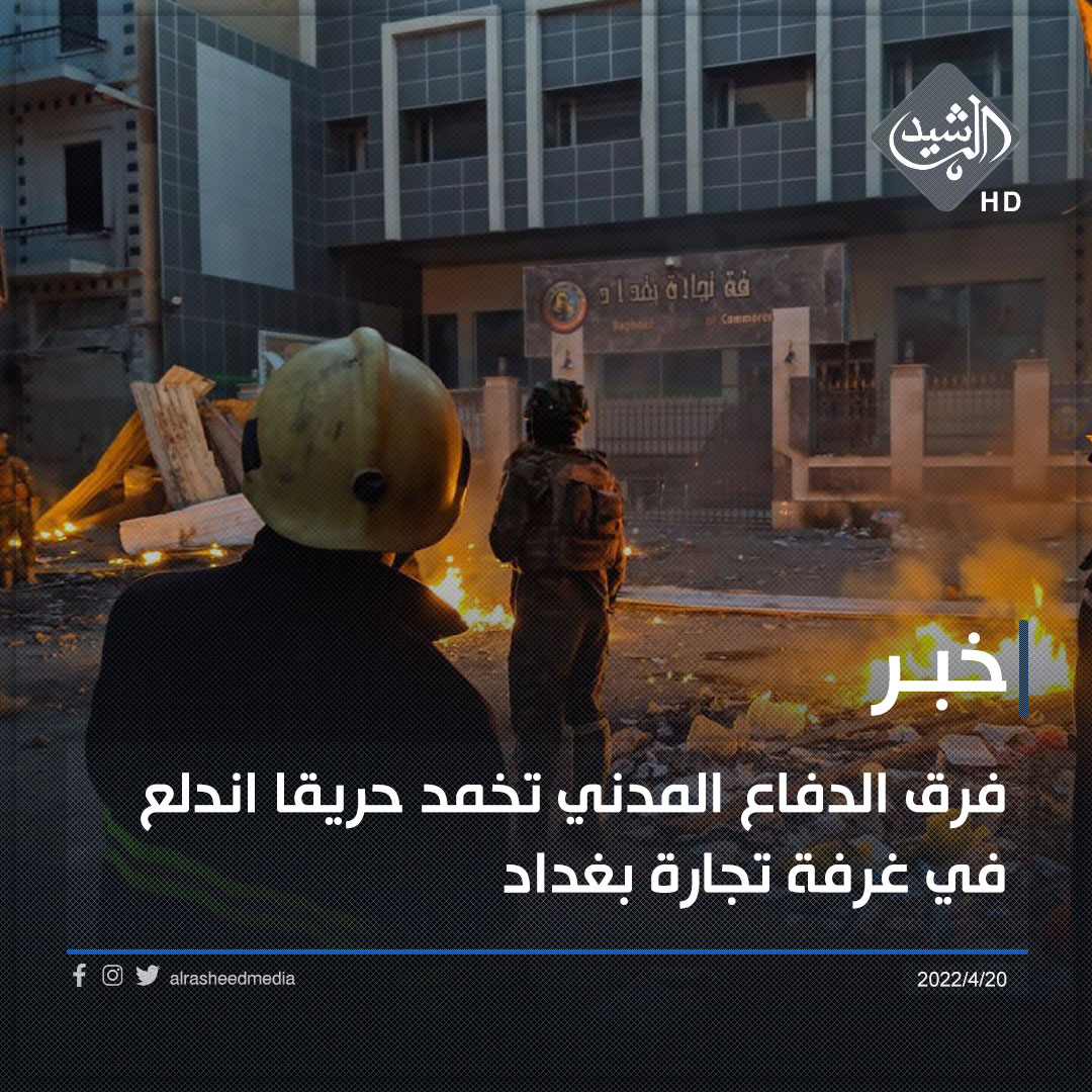 تمكنت فرق الدفاع المدني، من اخماد حادث حريق اندلع في غرفة تجارة بغداد.