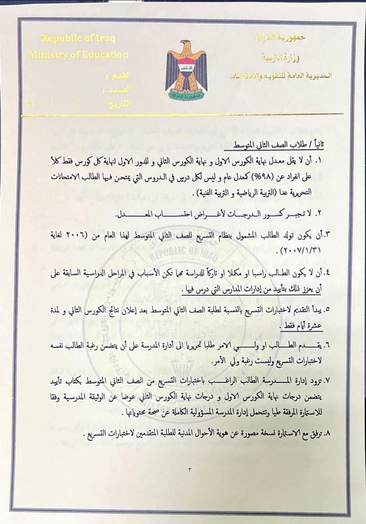 محلياتالتربية تُصدر الضوابط الخاصة بالتلاميذ والطلبة الراغبين بالتسريع قبل 4 سنوات 6 مشاهدات شارك الوسوموزارة التربية العراقيةقد يهمك أيضا عربي ودولي الولايات المتحدة تدفع 3 آلاف دولار لكل مهاجر غير شرعي مقابل مغادرة اراضيها قبل 3 ساعات 6 مشاهدات الحكم الرابع الاهلي يضرب الشرطة بقوة ويزيد من جراحاتهم آسيوياً.. قبل 4 ساعات 7 مشاهدات رياضة الشرطة يخسر أمام الأهلي السعودي بخماسية في دوري أبطال آسيا قبل 4 ساعات 25 مشاهدات سياسة الإعمار والتنمية يقدم وثيقة للإطار التنسيقي تتضمن 5 معايير لاختيار مرشح رئاسة الحكومة قبل 4 ساعات 11 مشاهدات سياسة الإطار التنسيقي يؤكد موقفه الداعم لحصر السلاح بيد الدولة قبل 4 ساعات 8 مشاهدات
