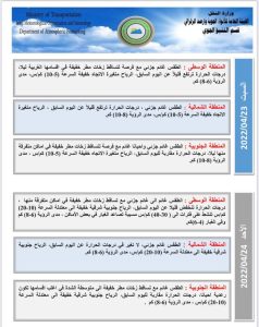 الانواء الجوية: امطار خفيفة ومتوسطة مع تصاعد للغبار خلال الايام المقبلة