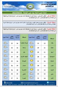 أعلنت هيئة الأنواء الجوية، اليوم الجمعة، عن حالة الطقس في البلاد للأيام المقبلة، فيما توقعت هطولاً للأمطار وانخفاضاً في درجات الحرارة.
