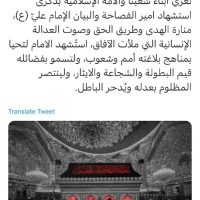 وقال صالح في تغريدة له عبر تويتر طالعتها الرشيد: “نُعزي أبناء شعبنا والأمة الإسلامية بذكرى استشهاد امير الفصاحة والبيان الإمام عليّ (ع)، منارة الهدى وطريق الحق وصوت العدالة الإنسانية التي ملأت الآفاق، استُشهد الامام لتحيا بمناهج بلاغته أمم وشعوب، ولتسمو بفضائله قيم البطولة والشجاعة والايثار، ولينتصر المظلوم بعدله ويُدحر الباطل”.