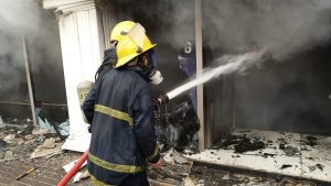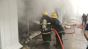 واضاف انه “تم زج 20 فرقة إطفاء مع عجلة السلم لتتمكن من إخماد الحادث والإحالة دون امتداد النيران إلى المحال التجارية القريبة والمجاورة لموقع الحادث”، مشيرة الى انه “تم انهاء الحريق دون تسجيل إصابات بشرية مع تحجيم الأضرار المادية”.