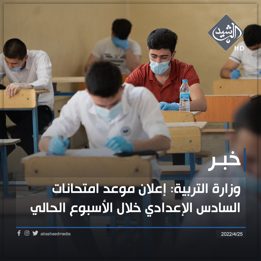 وقال المتحدث الرسمي باسم الوزارة حيدر فاروق السعدون في حديث للصحيفة الرسمية وتابعته الرشيد، إن “الوزارة ستعلن خلال الأسبوع الحالي جدول الامتحانات الوزارية النهائية لمرحلة السادس الإعدادي بدورها الأول للعام الدراسي الحالي ليتم تعميم الجدول والمواعيد الخاصة بها”، مرجحاً “إجراءها نهاية شهر حزيران وبداية تموز المقبلين”.