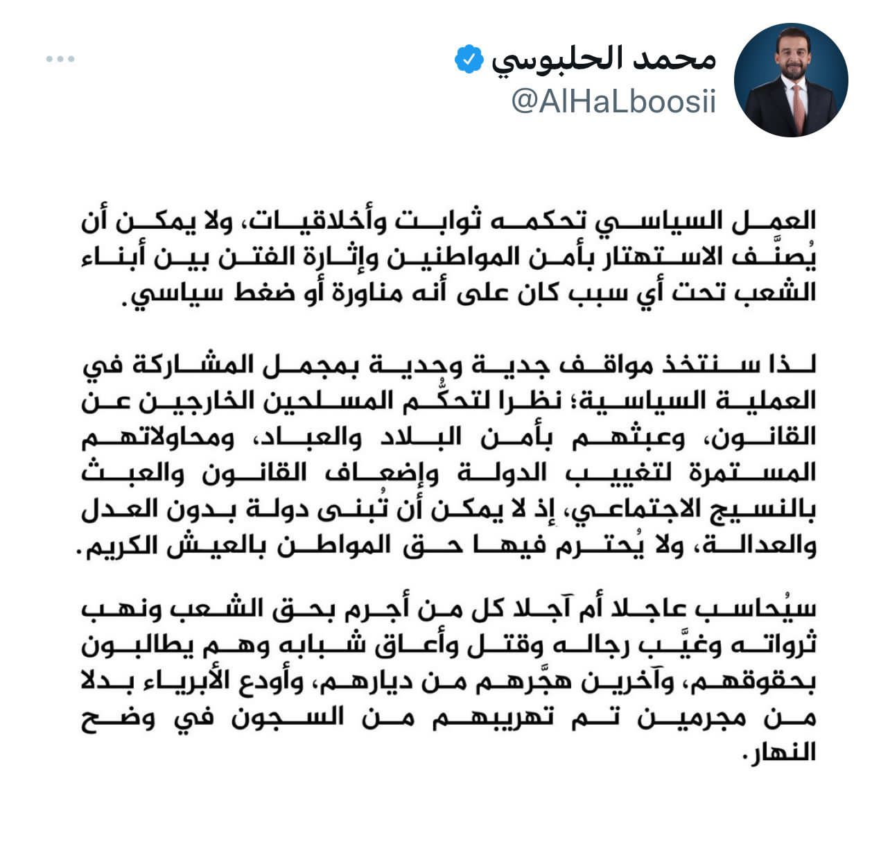 سياسةالحلبوسي: لا يمكن ان يصنف الاستهتار بأمن المواطنين واثارة الفتن على انه مناورة او ضغط سياسي قبل 4 سنوات 5 مشاهدات شارك الوسومالحلبوسيقد يهمك أيضا محليات التربية توافق على تمديد فترة التقديم للامتحانات التمهيدية (الخارجي) إلى نهاية العام الحالي قبل دقيقتان 2 مشاهدات الاخبار العاجلة بينهم الأطباء والصيادلة.. العراق يقرر حجب الحصة التموينية عن 13 شريحة قبل 4 دقائق 2 مشاهدات عربي ودولي بعد إيقافه عن العراق.. إيران تستثني تركيا من قرار قطع الغاز قبل 12 دقيقة 3 مشاهدات الاخبار العاجلة بعد كريستينسن.. إصابة كوندي تُشعل الإنذار الأحمر في برشلونة قبل 24 دقيقة 3 مشاهدات أقتصاد مصرف الرشيد ينفي عدم توفر سيولة أو الاستيلاء على أموال الزبائن قبل 34 دقيقة 3 مشاهدات