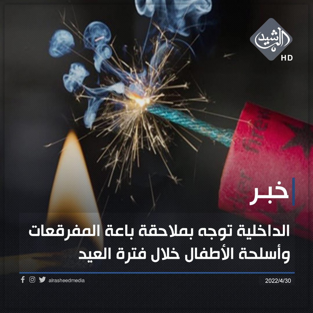 وجهت وزارة الداخلية، اليوم السبت، بملاحقة باعة المفرقعات والأسلحة التي يستخدمها الأطفال ومن يعمدون لمضايقة العوائل المحتفلة خلال فترة العيد.
