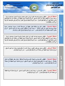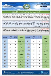 أعلنت هيئة الانواء الجوية، حالة الطقس في العراق خلال الايام المقبلة، فيما توقعت ارتفاع بالحرارة وفرصة لتساقط الامطار اعتبارا من الاحد المقبل.