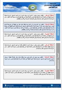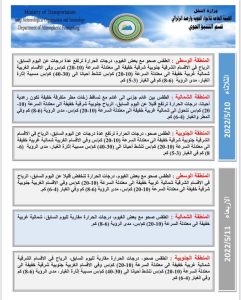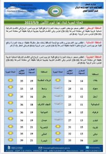 أعلنت هيئة الأنواء الجوية، اليوم الاثنين، عن حالة الطقس في البلاد للأيام المقبلة، فيما توقعت تصاعداً للغبار وانخفاضاً في درجات الحرارة الأسبوع الحالي.