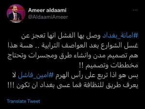 سياسةالخبير القانوني امير الدعمي: امانة بغداد وصل بها الفشل للعجز عن غسل الشوارع بعد العواصف قبل 4 سنوات 12 مشاهدات شارك الوسومامانة بغدادقد يهمك أيضا عربي ودولي فرنسا تتجه لتشريع طارئ لتفادي الشلل بعد تعثر موازنة 2026 قبل 29 دقيقة 4 مشاهدات عربي ودولي 1.6 مليون فلسطيني يواجهون المجاعة في غزة ووفاة 1200 مريض بسبب الحصار قبل 55 دقيقة 6 مشاهدات عربي ودولي واشنطن: على الرئيس الفنزويلي نيكولاس مادورو "الرحيل" قبل ساعة واحدة 7 مشاهدات عربي ودولي بعد تقرير البنتاغون.. الصين ترد: لسنا في سباق تسلح نووي مع أحد قبل ساعتين 9 مشاهدات محليات إقليم كردستان يعطل الدوام الرسمي ليوم الخميس المقبل قبل ساعتين 13 مشاهدات
