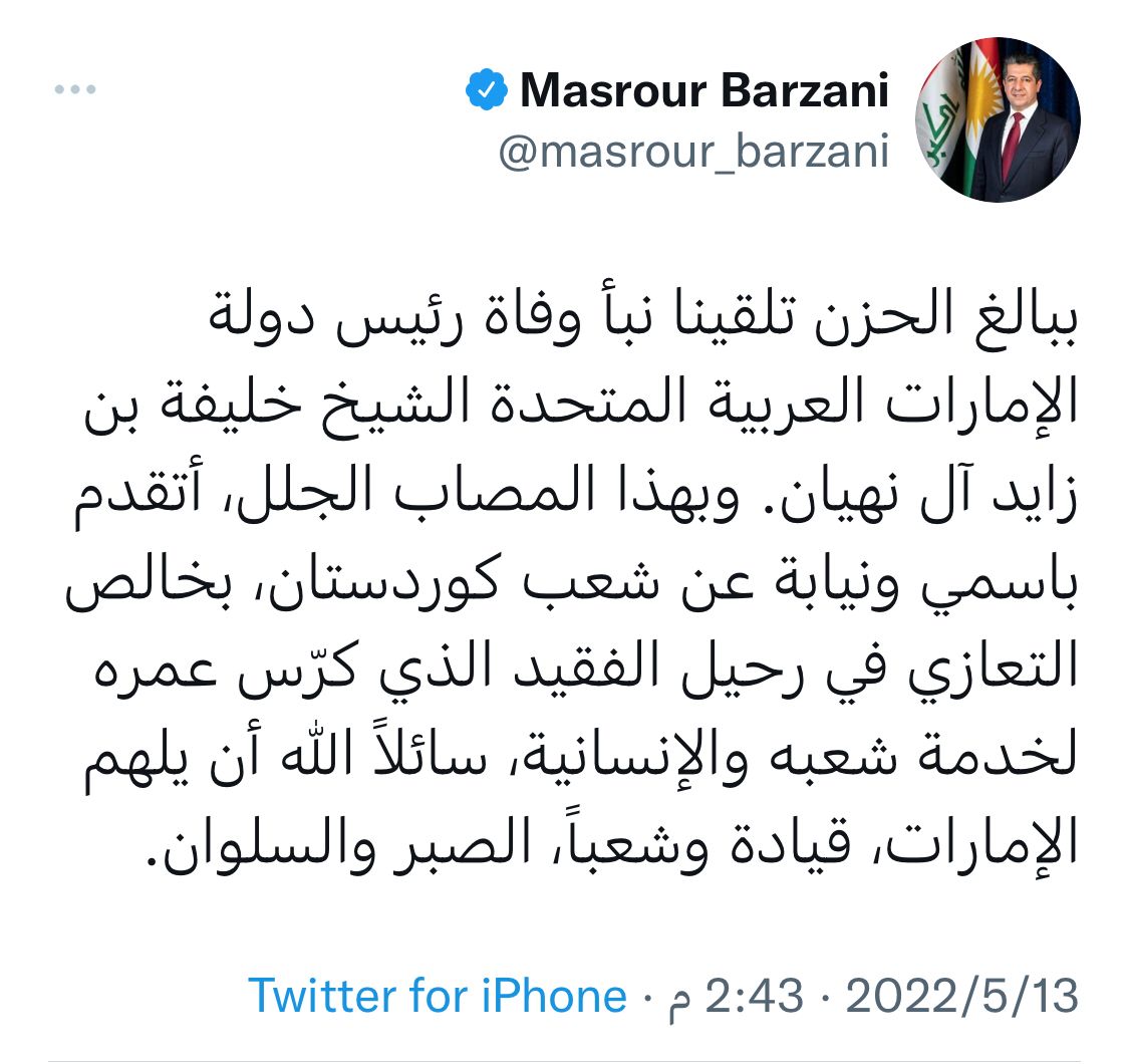 سياسةرئيس حكومة كردستان يعزي بوفاة رئيس دولة الامارات الشيخ خليفة بن زايد آل نهيان قبل 4 سنوات 6 مشاهدات شارك الوسومالشيخ خليفة بن زايد آل نهيانمسرور بارزانيقد يهمك أيضا أمن مقتل شاب برصاصة أطلقها منتسب أمني بالخطأ خلال "مشاجرة اعتيادية" في أبي غريب غربي بغداد قبل ساعتين 7 مشاهدات رياضة مدرب الأرجنتين معلقاً على قرعة المونديال: منتخب الجزائر قوي والأردن مجهول بالنسبة لي قبل ساعتين 14 مشاهدات محليات العراق يستقبل موجة أمطار غزيرة.. الأنواء تحذر من سيول وفيضانات في المناطق غير المخدومة اعتباراً من الغد قبل 3 ساعات 16 مشاهدات محليات المالية تنفي استقبال نائبة للتفاوض مع وزيرتها بشأن مستحقات المقاولين قبل 3 ساعات 10 مشاهدات عربي ودولي البيت الأبيض يحذر: أوروبا مهددة بـ"زوال الحضارة" خلال 20 عاماً قبل 3 ساعات 9 مشاهدات