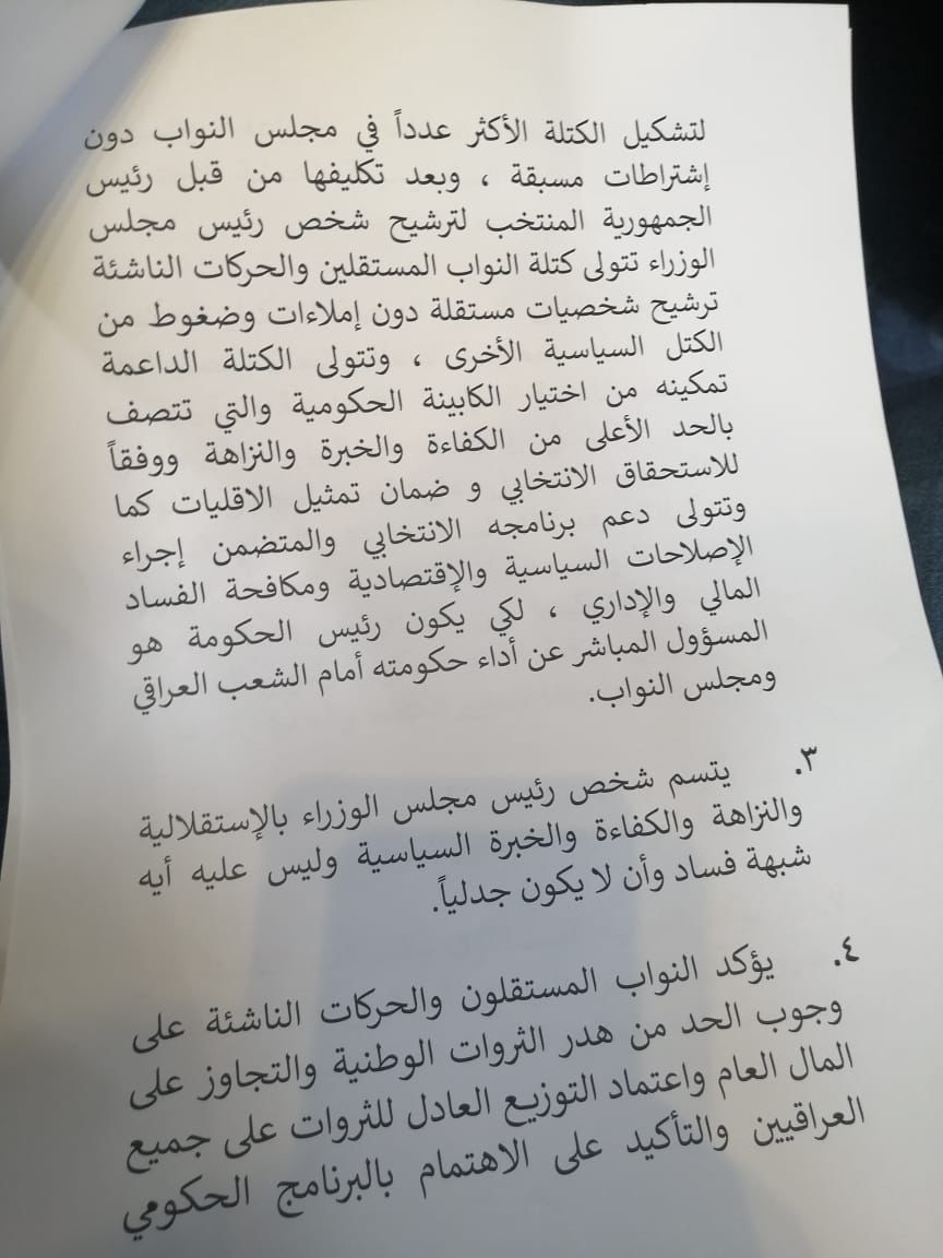 سياسةالرشيد تنشر مبادرة النواب المستقلين لانهاء الانسداد السياسي قبل 4 سنوات 3 مشاهدات شارك الوسومالنواب المستقلينقد يهمك أيضا أقتصاد الحكومة العراقية: تذبذب أسعار الصرف بالسوق الموازي طارئ ومؤقت وناتج عن معلومات غير دقيقة قبل 3 دقائق 1 مشاهدة أمن بسبب المطالبة بإبراز الهويات.. اندلاع اشتباكات بين قوتين أمنيتين بنقطة تفتيش قرب جمجمال في السليمانية قبل 13 دقيقة 2 مشاهدات محليات الداخلية تعلن نتائج التحقيق بحادثة طلب مبالغ مالية من مواطن تركي في مطار بغداد قبل 33 دقيقة 5 مشاهدات عربي ودولي الطاقة الذرية: تضرر الدرع الواقي لمحطة تشرنوبل النووية بسبب هجوم بطائرة مسيرة قبل 37 دقيقة 5 مشاهدات عربي ودولي مع استمرار المفاوضات.. جيش أوكرانيا يؤكد: لا تنازل عن الأرض لروسيا قبل ساعة واحدة 6 مشاهدات