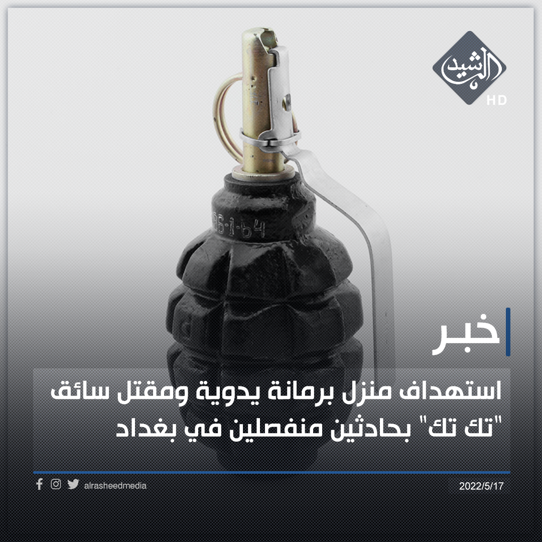 افاد مصدر أمني، باستهداف منزل محامي برمانة يدوية ومقتل صاحب “تك تك” بحادثين منفصلين في بغداد.