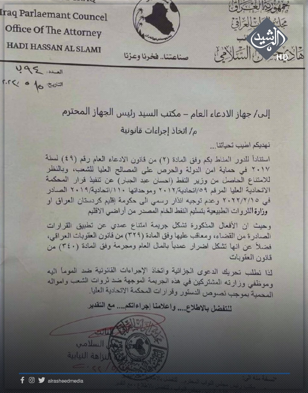 محلياتلعدم تنفيذ قرار المحكمة الاتحادية .. تحريك دعوى جزائية ضد وزير النفط (وثيقة) قبل 4 سنوات 8 مشاهدات شارك الوسومالمحكمة الاتحاديةوزارة النفطقد يهمك أيضا رياضة منتخب المغرب يقع في مجموعة البرازيل وانجلترا تصطدم بكرواتيا في قرعة المونديال قبل دقيقتان رياضة حدث تاريخي.. 3 رؤساء دول يشاركون في سحب قرعة المونديال قبل 16 دقيقة 2 مشاهدات عربي ودولي قرار جديد من مجموعة السبع والاتحاد الأوروبي: فرض حظر كامل على النفط الروسي قبل 30 دقيقة 2 مشاهدات رياضة الفيفا يمنح جائزة السلام 2025 لدونالد ترامب قبل ساعة واحدة 7 مشاهدات أمن العراق يعلن إنشاء "بنك معلومات وطني" للأسلحة قبل ساعة واحدة 6 مشاهدات