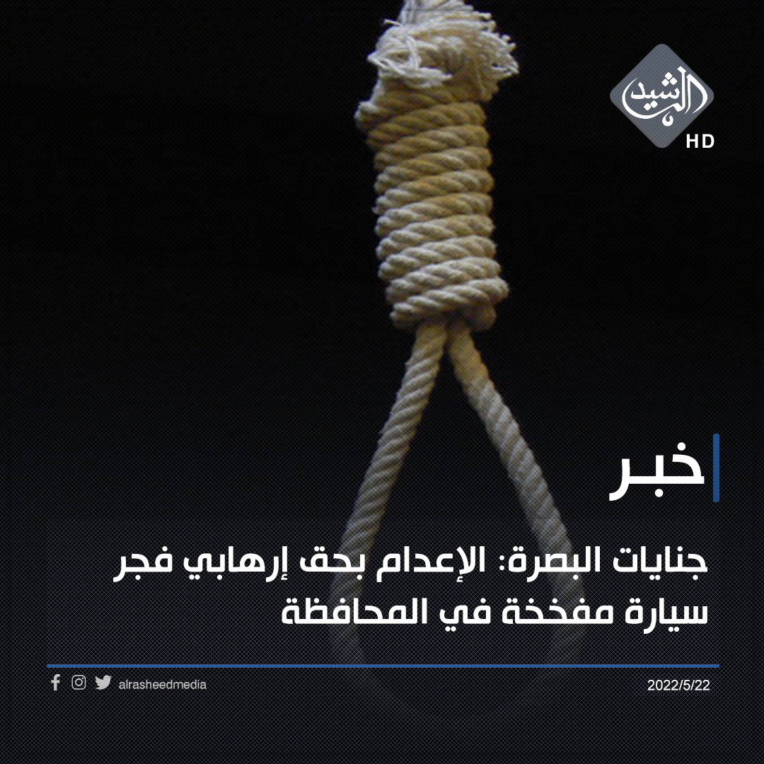 أصدرت محكمة جنايات البصرة، حكما بالاعدام شنقا حتى الموت بحق مجرم ارهابي عن جريمة تفجير سيارة مفخخة في سيطرة مدخل محافظة البصرة– منطقة الرميلة على الطريق الدولي السريع.