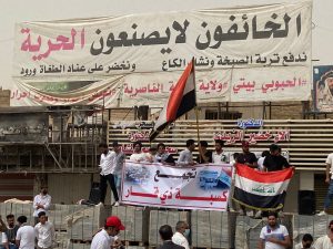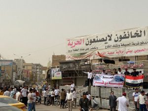 وقال مراسل الرشيد، ان”العشرات من الكسبة واصحاب القمصان البيضاء تظاهروا في ساحة الحبوبي وسط الناصرية للمطالبة بفرص عمل”.