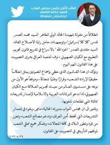 سياسةالزاملي: مجلس النواب ماضٍ في اصدار التشريعات التي تحفظ أمن العراق قبل 4 سنوات 4 مشاهدات شارك الوسومالزامليقد يهمك أيضا رياضة الفيفا يمنح جائزة السلام 2025 لدونالد ترامب قبل 15 دقيقة 4 مشاهدات أمن العراق يعلن إنشاء "بنك معلومات وطني" للأسلحة قبل 31 دقيقة 3 مشاهدات عربي ودولي قيود وضوابط جديدة.. اليابان تشدد سياسات الهجرة رغم شيخوخة السكان قبل 36 دقيقة 7 مشاهدات محليات العراق يستعد لاستقبال حالة جوية غير مستقرة وأمطار غزيرة اعتباراً من مساء الغد قبل ساعة واحدة 4 مشاهدات عربي ودولي ألمانيا: سيتعين على أوروبا الحوار مع روسيا "في مرحلة ما" قبل ساعة واحدة 5 مشاهدات