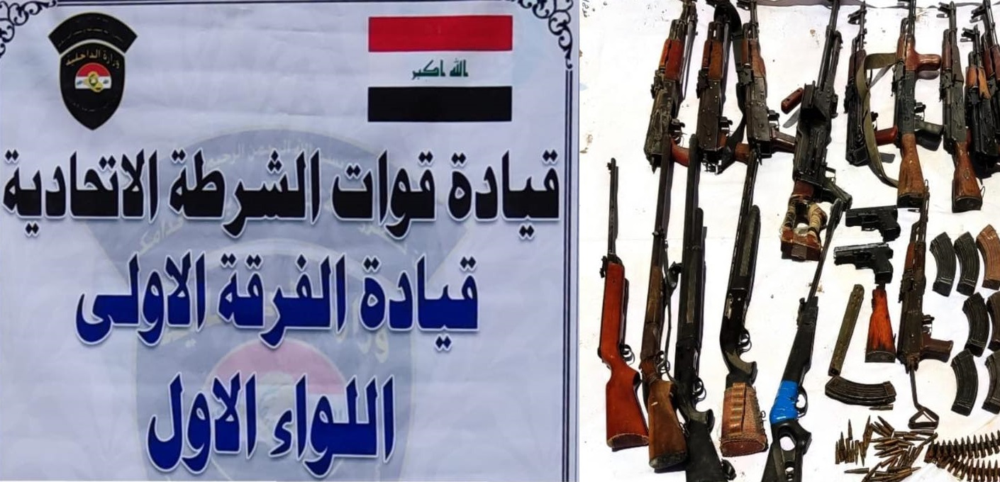 وذكرت القيادة في بيان تلقته الرشيد، انه”ضمن الجهود الأمنية المستمرة لقطعات الشرطة الاتحادية والتي تضمن حفظ سلامة المواطنين وتأمين حماية المناطق، نفّذت قوة من اللواء الأول الفرقة الأولى شرطة اتحادية باشراف مباشر لقائد الفرقة اللواء “محمد جواد جعفر” ، بالاشتراك مع مفارز استخبارات الفوج الثاني التابعة الى وكالة الاستخبارات والتحقيقات الاتحادية، عملية تفتيش على السلاح غير المرخص ومصادرة مجموعة من الأسلحة والاعتدة ضمن منطقة (النهروان – ام العبيد) جنوب شرق بغداد”.