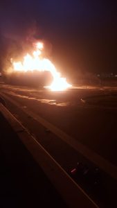 وقال المصدر في حديث للرشيد، ان”حادث انقلاب واحتراق صهريج محمل بمادة الوقود وقع ضمن السريع الدولي الجنوبي بالقرب من منطقة اللطيفية”.
