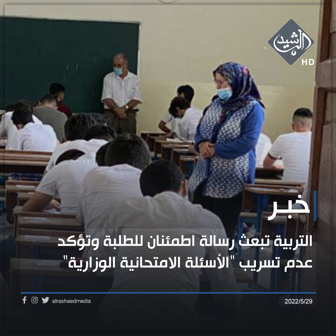 التربية تبعث رسالة اطمئنان للطلبة وتؤكد عدم تسريب "الأسئلة الامتحانية الوزارية"