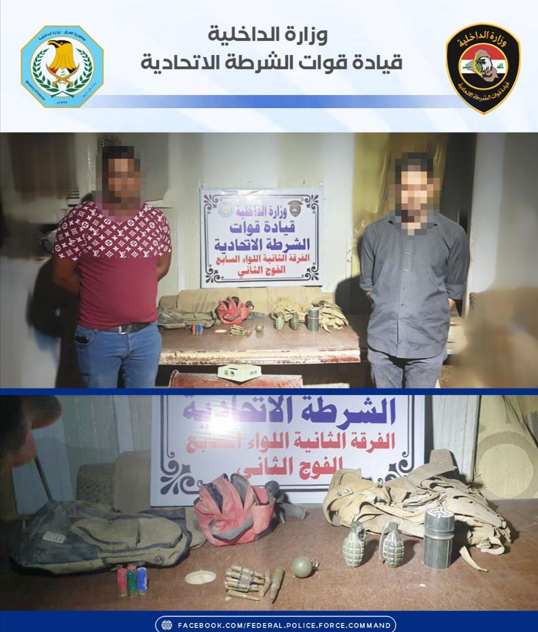 وذكرت القيادة، في بيان تلقته “الرشيد”، ان قوة من اللواء السابع الفرقة الثانية شرطة اتحادية بالاشتراك مع مفارز استخبارات اللواء التابعة إلى وكالة الاستخبارات والتحقيقات الاتحادية، نفذت عملية تفتيش لعدد من الفضاءات والساحات الفارغة ضمن منطقة (الري)، أسفرت عن العثور على كرفان في احد الساحات الفارغة وضبط بداخله 3 رمانة هجومية ، 23 اطلاقات مختلفة الأنواع ، درع ، وتم على أثرها إلقاء القبض على اثنين متهمين (اصحاب الكرفان)”.