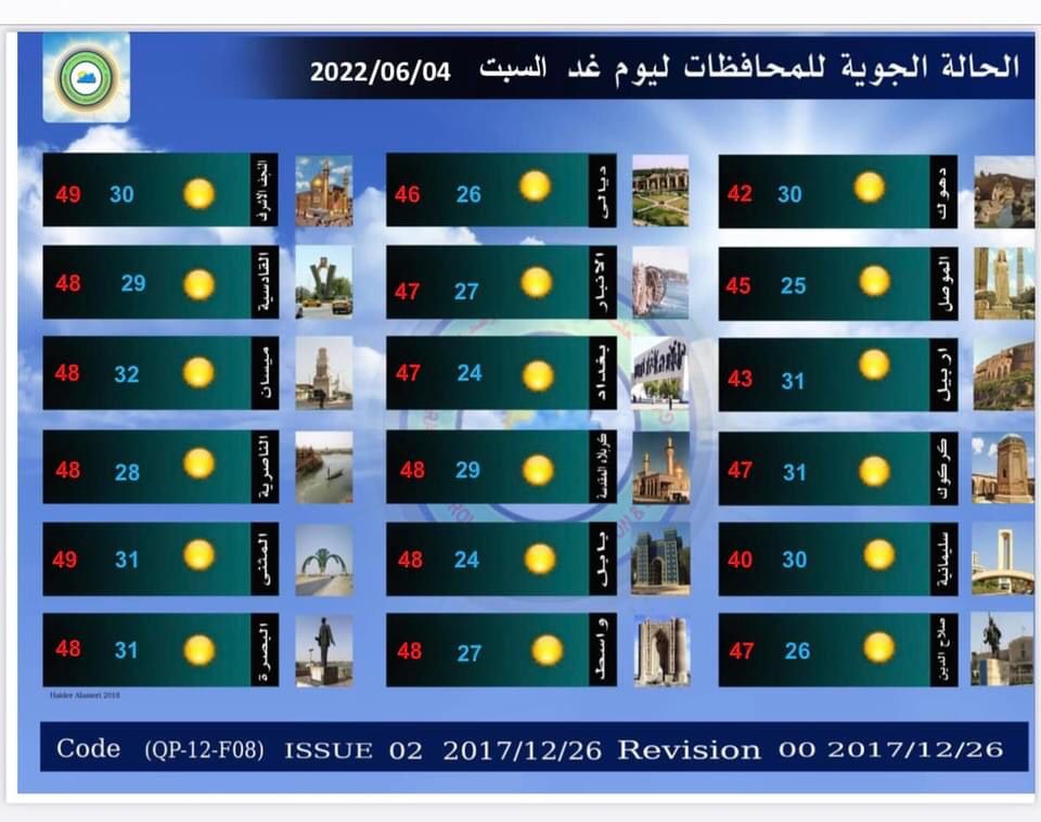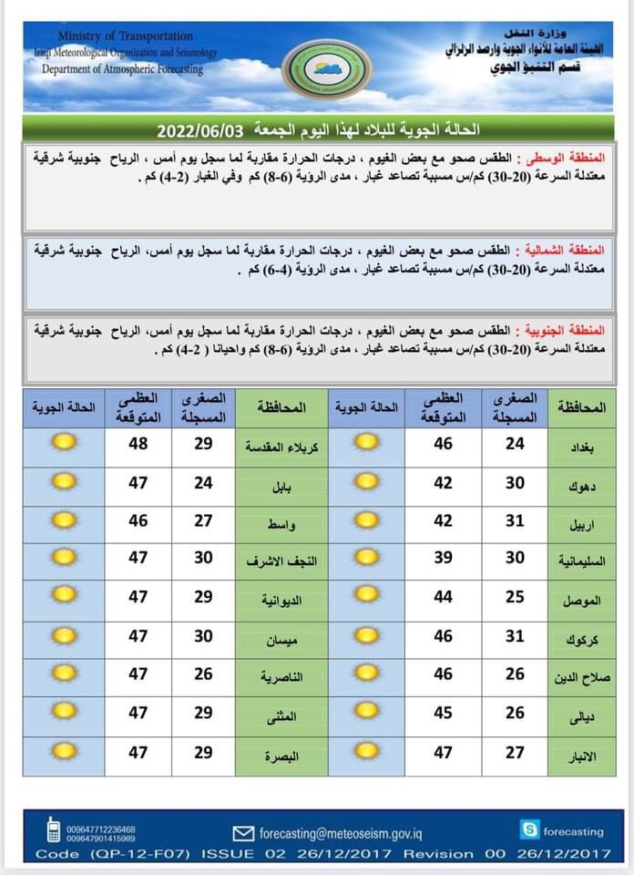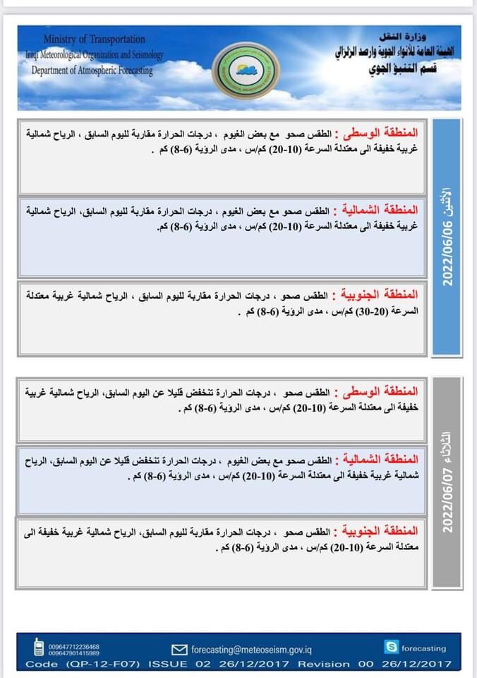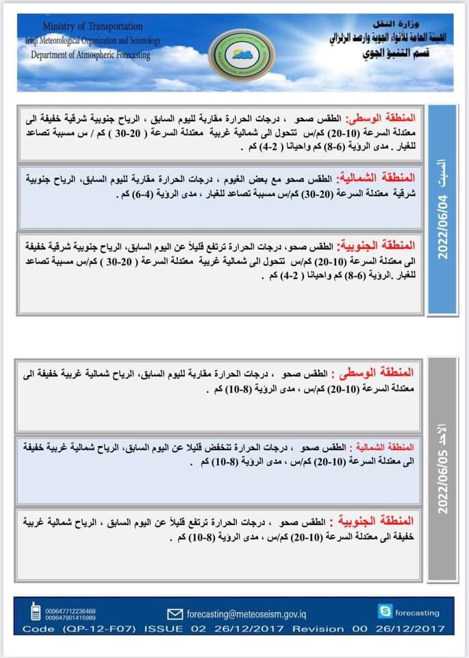 محلياتالانواء الجوية: انخفاض بدرجات الحرارة بدءاً من الثلاثاء المقبل قبل 4 سنوات 5 مشاهدات شارك الوسومالانواء الجويةدرجات الحرارةقد يهمك أيضا رياضة إعلان حرب.. ريال مدريد يجهز تقريرًا للفيفا حول قضية نيجريرا قبل 5 دقائق 3 مشاهدات عربي ودولي الأردن.. سيناريو حل البرلمان وتعديل الدستور يعود للواجهة قبل 11 دقيقة 3 مشاهدات عربي ودولي إيران تعلن تفكيك خلية تابعة لجماعة "خلق" في طهران قبل 19 دقيقة 5 مشاهدات عربي ودولي أكسيوس: ترامب يعتزم إعلان بدء المرحلة الثانية من اتفاق غزة قبل عيد الميلاد قبل 28 دقيقة 5 مشاهدات محليات طقس العراق.. أمطار رعدية وانخفاض بدرجات الحرارة خلال الأيام المقبلة قبل ساعة واحدة 8 مشاهدات