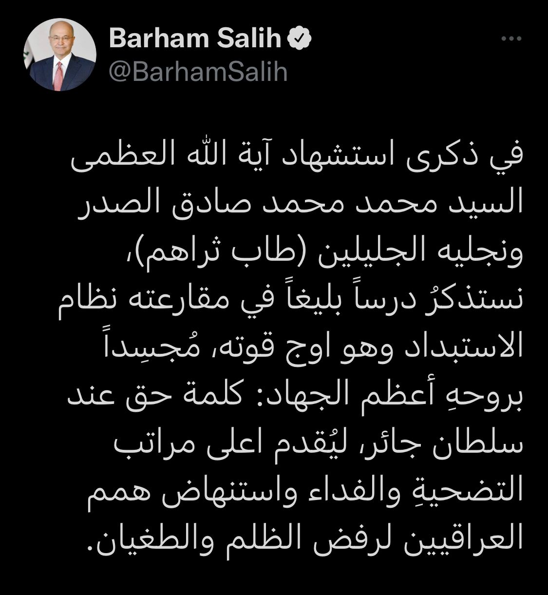 سياسةرئيس الجمهورية: بذكرى استشهاد السيد الصدر ونجليه نستذكر درساً بليغاً في مقارعة الاستبداد قبل 4 سنوات 5 مشاهدات شارك الوسومالصدربرهم صالحقد يهمك أيضا سياسة العراق يطلب من الأغذية العالمي زيادة الدعم الدولي المخصص له بمجال الأمن الغذائي المستدام قبل 4 دقائق 1 مشاهدة عربي ودولي بري لوفد مجلس الأمن: لن نتفاوض تحت النار وسلاح حزب الله شأن داخلي قبل 19 دقيقة 4 مشاهدات أمن الاستخبارات العسكرية تحبط عملية تهريب مواد صناعية وغذائية إلى ديالى قبل 57 دقيقة 8 مشاهدات عربي ودولي قسد تمنع إقامة أي احتفالات بسقوط نظام الأسد في مناطقها قبل ساعة واحدة 7 مشاهدات أمن السيد الصدر يوجه سرايا السلام بشأن تهريب الأسلحة: نسقوا مع الجهات المختصة..فلعل هناك خرقاً وتواطؤاً قبل ساعتين 9 مشاهدات