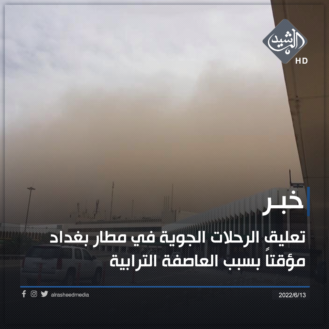 قررت ادارة مطار بغداد، تعليق الرحلات الجوية مؤقتا بسبب العاصفة الترابية.