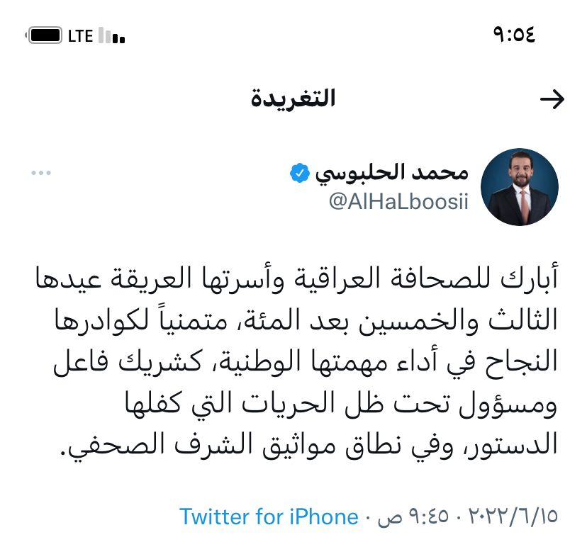 سياسةالحلبوسي يبارك للصحافة العراقية عيدها الـ٥٣ بعد المئة قبل 4 سنوات 2 مشاهدات شارك الوسومالحلبوسيقد يهمك أيضا سياسة البطريركية الكلدانية توضح بشأن ما تداولته بعض المواقع والصفحات من تصريحات لويس ساكو قبل 3 ساعات 15 مشاهدات عربي ودولي الداخلية السورية: اعتقال زعيم تنظيم داعش بدمشق في عملية أمنية بالتعاون مع التحالف الدولي قبل 4 ساعات 12 مشاهدات سياسة السيد الصدر: لا مكان للتطبيع ولا لشرعنته في العراق قبل 4 ساعات 10 مشاهدات عربي ودولي الحرس الثوري الإيراني يوقف سفينة محملة بـ4 ملايين لتر من الوقود المهرب في مياه الخليج قبل 4 ساعات 11 مشاهدات عربي ودولي الجيش الأردني يشن غارات استهدفت شبكات تهريب ومزارع مخدرات بريف السويداء قبل 5 ساعات 10 مشاهدات