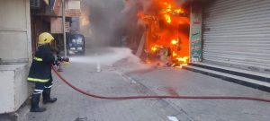 وذكرت المديرية في بيان تلقته الرشيد، ان”مفارزنا في مركز دفاع مدني العمارة تخمد حادث حريق اندلع بمحل لتجارة المواد الكهربائية والمنزلية داخل سوق العمارة الكبير وسيطرت على النيران المندلعة بمهنية عاليه وبوقت قياسي قصير وحدت من توسعها وانتشارها إلى باقي المحال المجاورة كون المنطقة تقع في منطقة تجارية وبدون اي اضرار بشرية”.