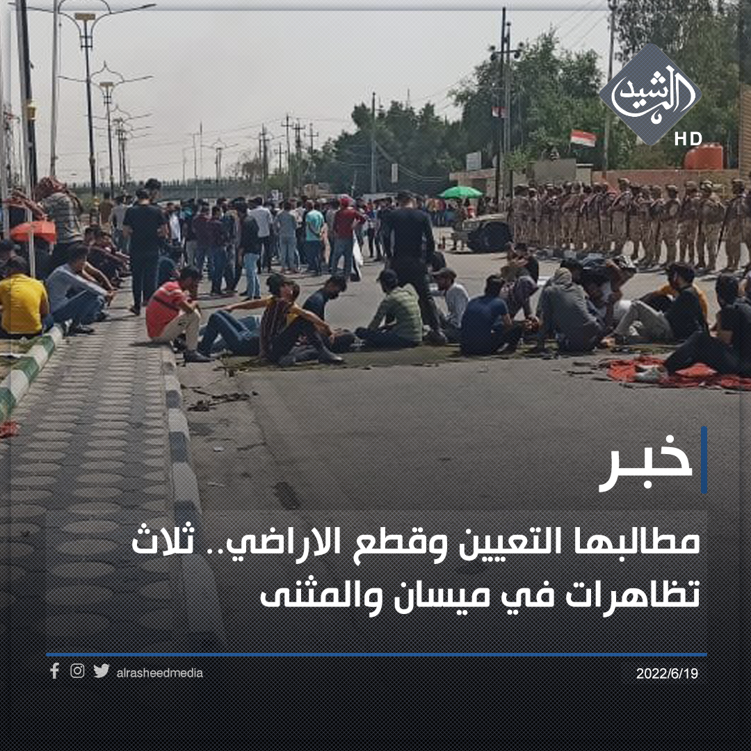 شهدت محافظتا ميسان والمثنى، ثلاث تظاهرات تنوعت مطالبها بين التعيين وتوزيع قطع الاراضي.