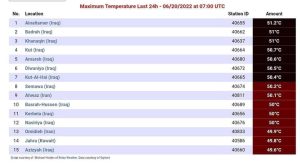 محليات١٣ مدينة عراقية تحتل أعلى درجات الحرارة في العالم قبل 3 سنوات 7 مشاهدات شارك الوسومدرجات الحرارةقد يهمك أيضا محليات طقس العراق.. أمطار رعدية وانخفاض بدرجات الحرارة خلال الأيام المقبلة قبل 27 دقيقة 4 مشاهدات أقتصاد استقرار أسعار النفط وبرميل برنت فوق 63 دولاراً قبل 45 دقيقة 3 مشاهدات عربي ودولي الرئيس اللبناني: هدف المحادثات مع إسرائيل تجنب حرب ثانية قبل 10 ساعات 9 مشاهدات عربي ودولي مستشار المرشد الإيراني يهاجم بيان مجلس التعاون الخليجي بشأن الجزر الثلاث وحقل غاز "أرش" قبل 11 ساعة 11 مشاهدات سياسة قادة المجلس السياسي الوطني يتفقون على اعداد ورقة بشأن ادارة الدولة العراقية بالمرحلة المقبلة قبل 12 ساعة 9 مشاهدات