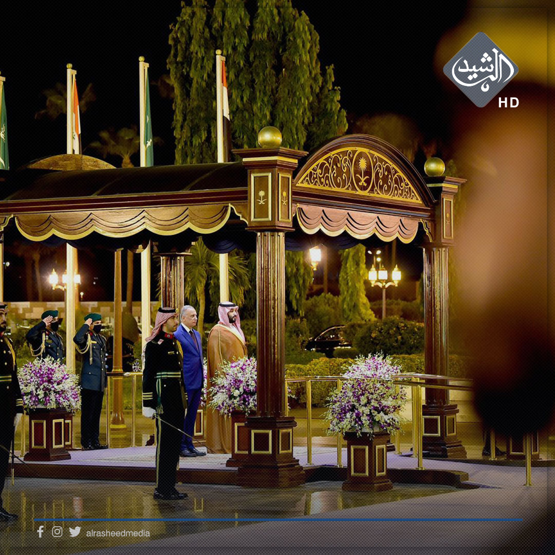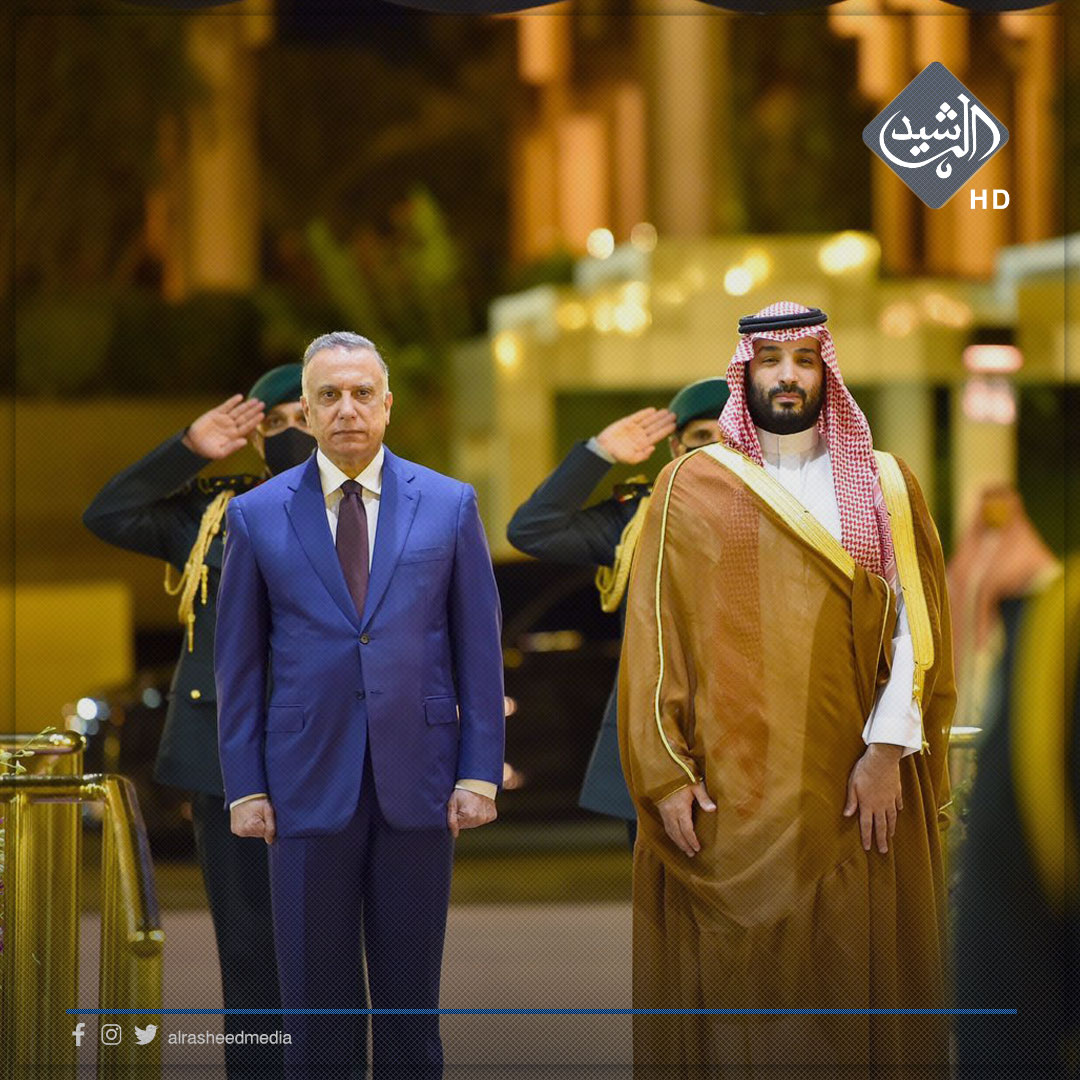 وذكر بيان لمكتب الكاظمي تلقته الرشيد، انه"جرت مراسم استقبال رئيس مجلس الوزراء مصطفى الكاظمي، من قبل ولي عهد المملكة العربية السعودية الأمير محمد بن سلمان آل سعود".
