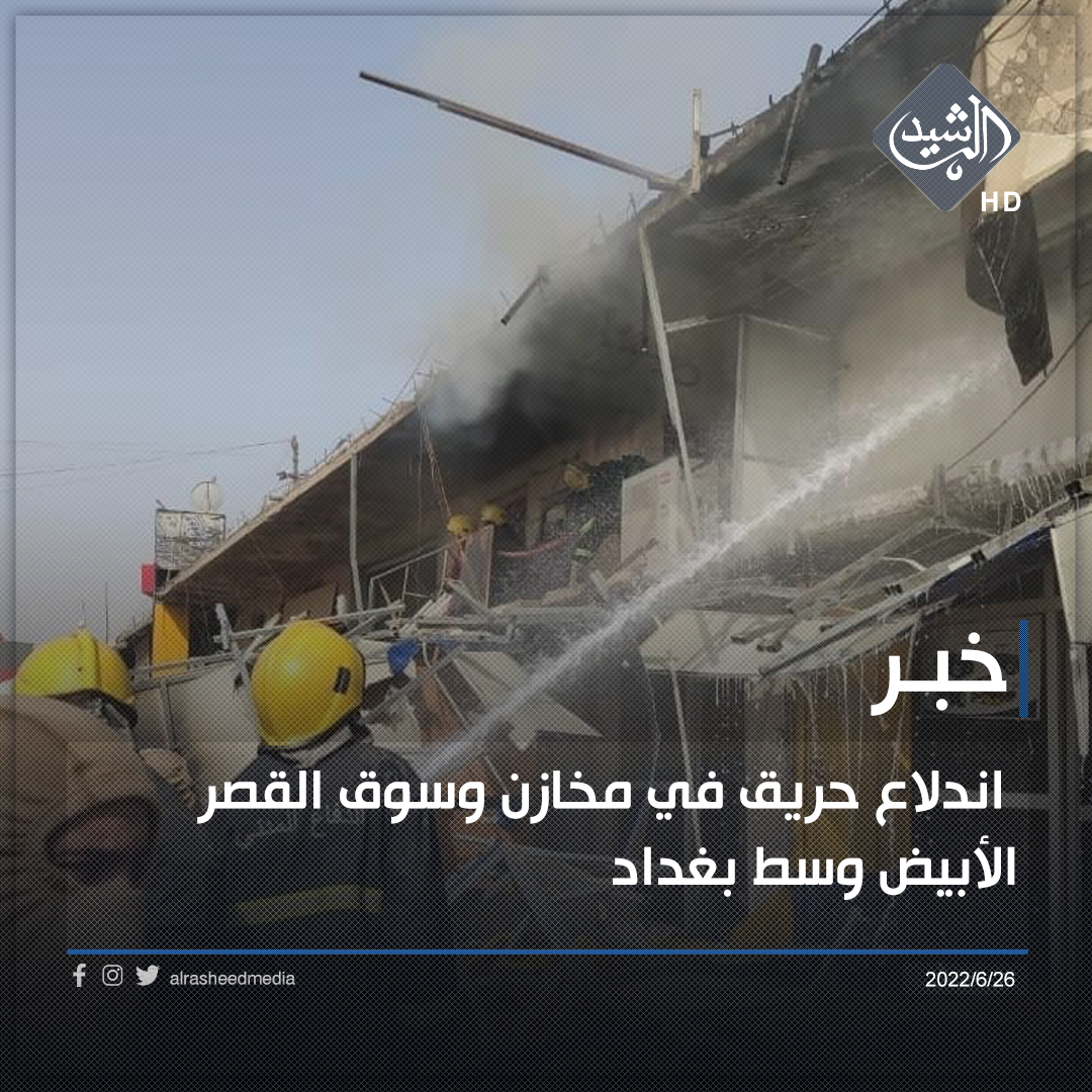 وذكرت المديرية في بيان تلقته الرشيد، أن “فرق الدفاع المدني تكافح حادث حريق داخل مخازن ومحال سوق بغداد في منطقة القصر الأبيض وسط بغداد”.