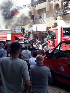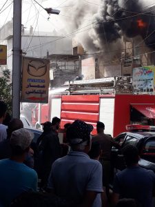 وقال المصدر في حديث للرشيد، ان”الدفاع المدني زج ب ١٣ فرقة اطفاء في محاولة للسيطرة على حادث الحريق الذي اندلع داخل بناية ومحلات تضم ادوات احتياطية ضمن مجمع القصر الابيض”.