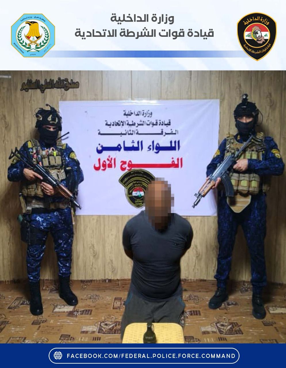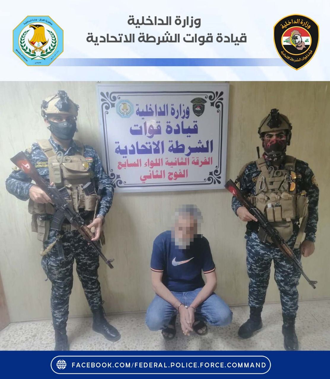 واضافت، ان “قوة من اللواء السابع الفرقة الثانية شرطة اتحادية مسنودة بالجهد الاستخباري ومفرزة من مكتب مكافحة إجرام البياع، القت القبض على متهم مطلوب وفق أحكام المادة 430 (تهديد) في منطقة (الشباب) جنوب غربي بغداد”.