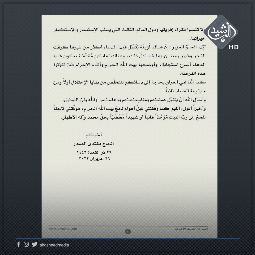 محلياتالسيد الصدر يوجه رسالةً للحجاج قبل 3 سنوات 7 مشاهدات شارك السيد مقتدى الصدر الوسومالصدرقد يهمك أيضا رياضة انتهاء الشوط الاول بين العراق والسودان في كأس العرب بالتعادل السلبي قبل 9 دقائق 5 مشاهدات عربي ودولي "إيلون ماسك" يدعو إلى تفكيك الاتحاد الأوروبي قبل 44 دقيقة 7 مشاهدات رياضة انطلاق مباراة المنتخب الوطني العراقي ونظيره السوداني في بطولة كأس العرب قبل 57 دقيقة 9 مشاهدات رياضة الجزائر تقسو على البحرين بخماسية في كأس العرب قبل ساعة واحدة 6 مشاهدات رياضة تشكيلة المنتخب الوطني العراقي لمواجهة نظيره السوداني في كأس العرب قبل ساعتين 33 مشاهدات
