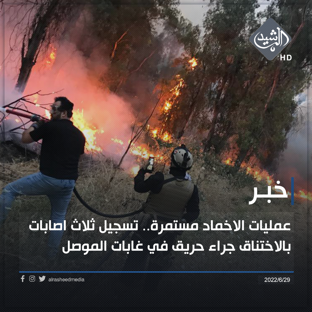 افاد مصدر أمني، بتسجيل ثلاث اصابات بالاختناق جراء حريق في منطقة الغابات بالموصل.