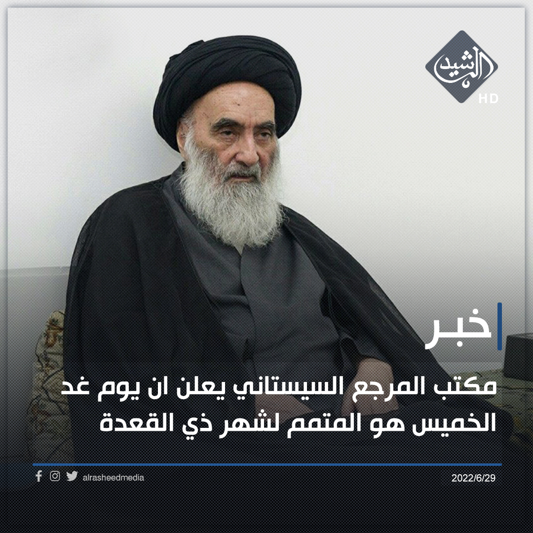 مكتب المرجع السيستاني يعلن ان يوم غد الخميس هو المتمم لشهر ذي القعدة