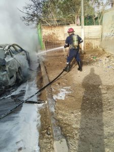 ٣- مركز حي العامل يخمد حادثين الأول داخل غرفة حرس مدرسة سعيد ابن المسيب بسبب تماس كهربائي داخلي والثاني حادث عجلة نوع كيا اوبتيما بسبب تماس كهربائي داخلي.